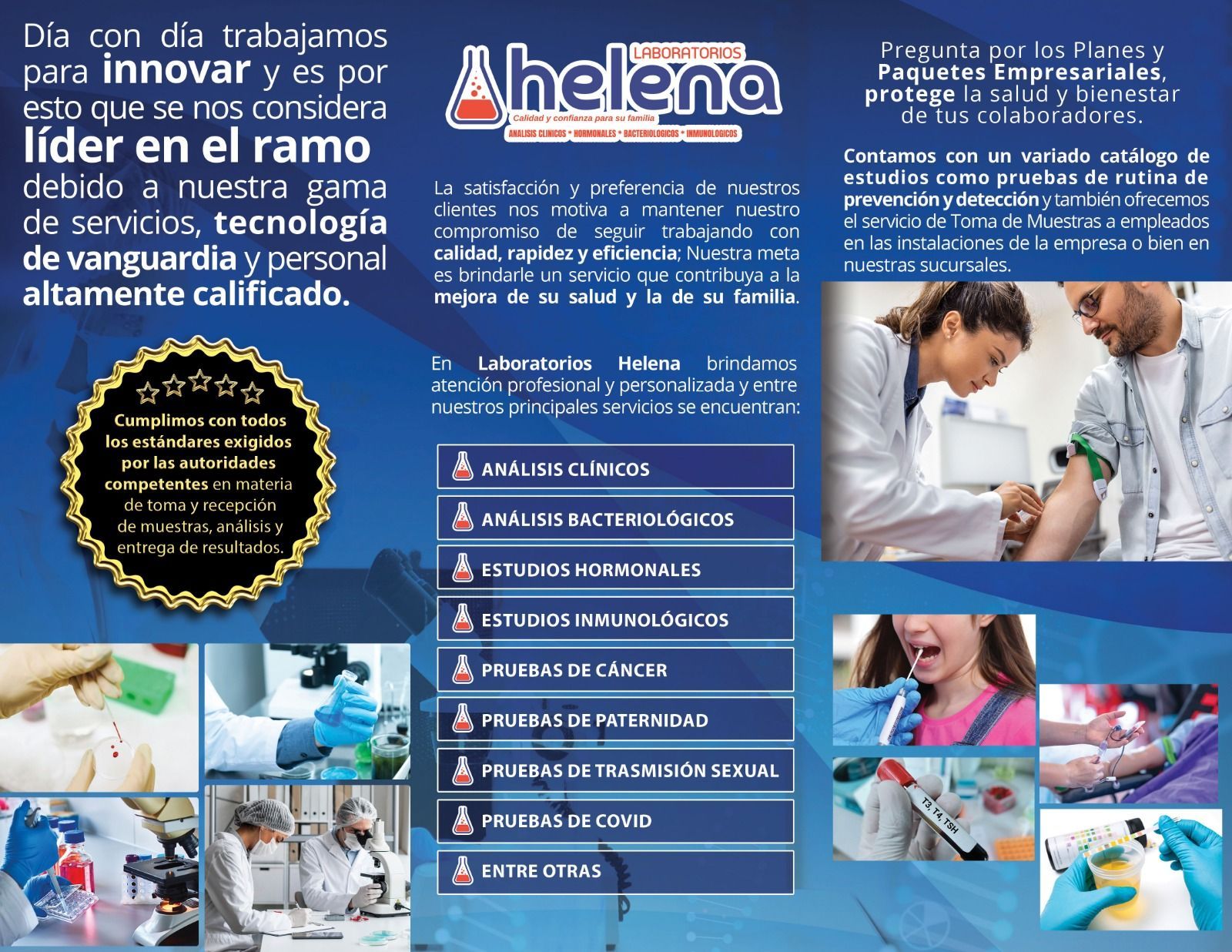 Para acceder a nuestros servicios o consultar sobre nuestros planes y paquetes, no dude en ponerse en contacto con nosotros. En Laboratorios Helena, estamos listos para asistirle con profesionalismo y cuidado personalizado. Nuestra prioridad es su salud y bienestar, por lo que nos comprometemos a brindar resultados confiables y atención de primera calidad.